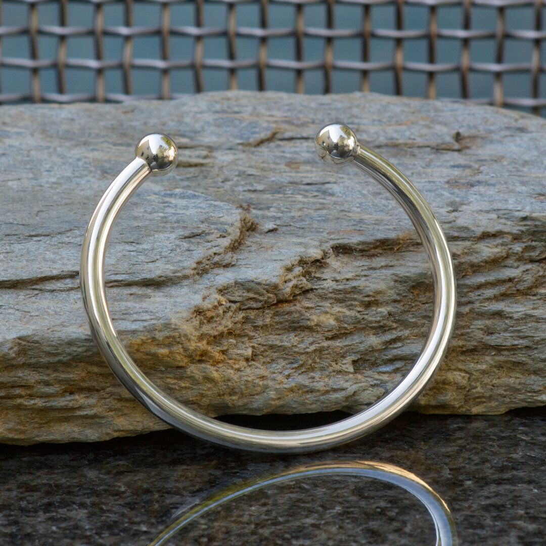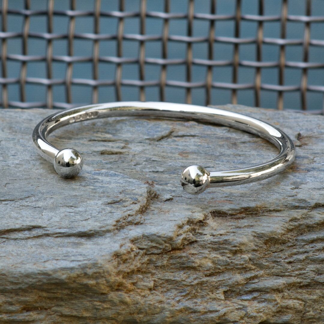 Kynance Cuff Solid Silver Torque Bracelet, Handmade with London Hallmarks. 5mm Wide with Solid Silver Balls.